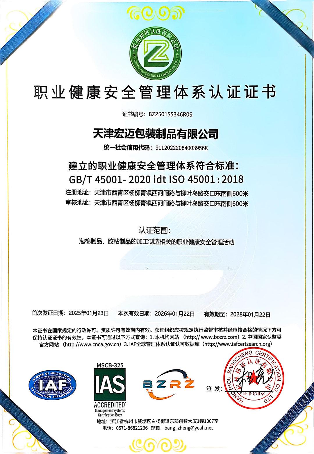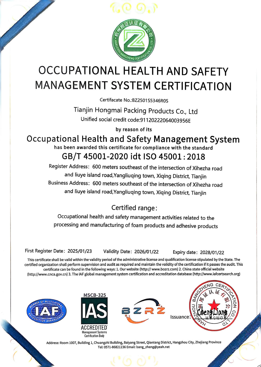 | 职业健康安全管理体系认证证书(中文) | 职业健康安全管理体系认证证书(英文) |